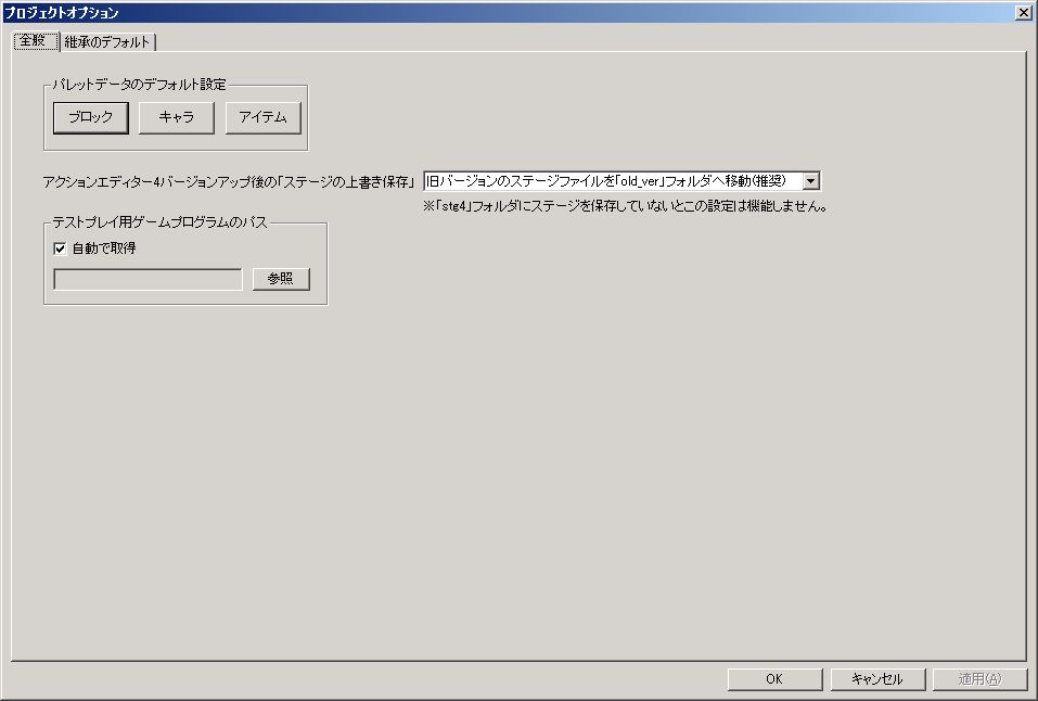 Default settings for the “Inheritance Palette” in blocks, characters, and items.